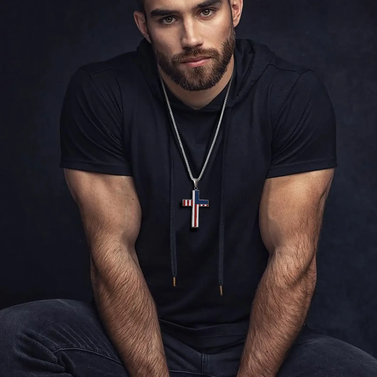 Express your Christian faith and patriotism with this timeless stainless steel American flag cross necklace, perfect for any occasion.