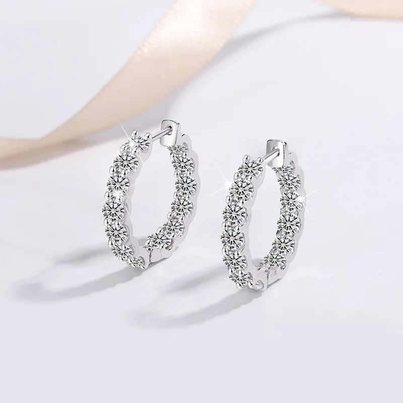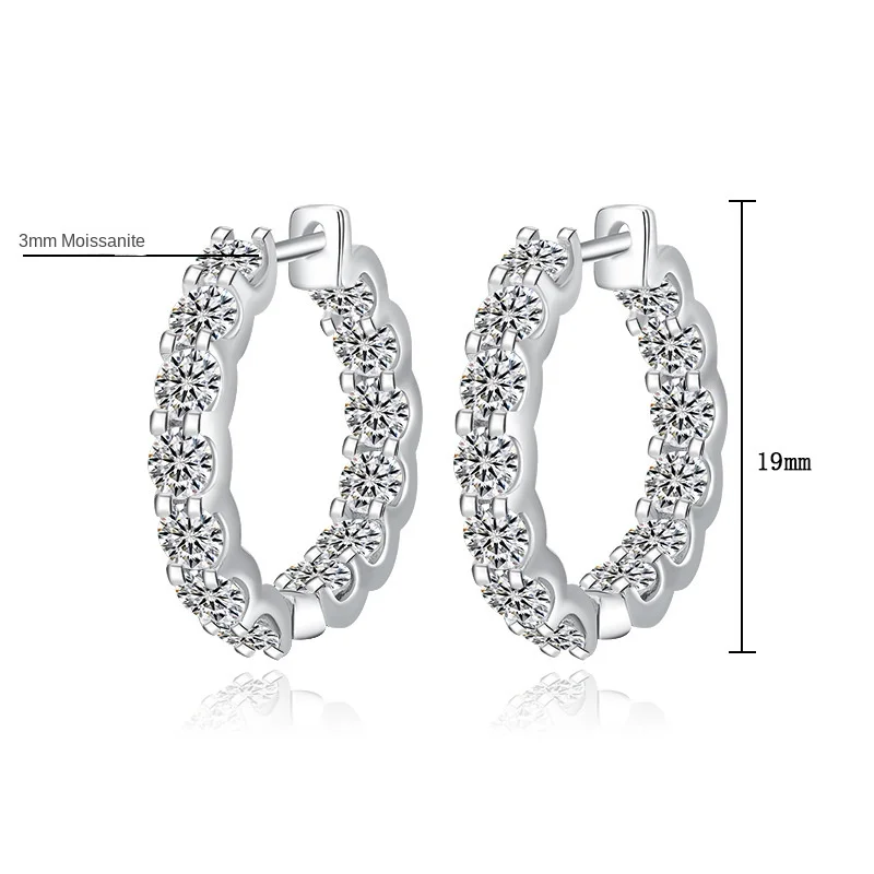 Hot Selling 3MM VVS D Color Moissanite Fine Jewelry 925 Sterling Silver 2.6CT Moissanite Hoop Earrings for Women